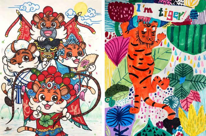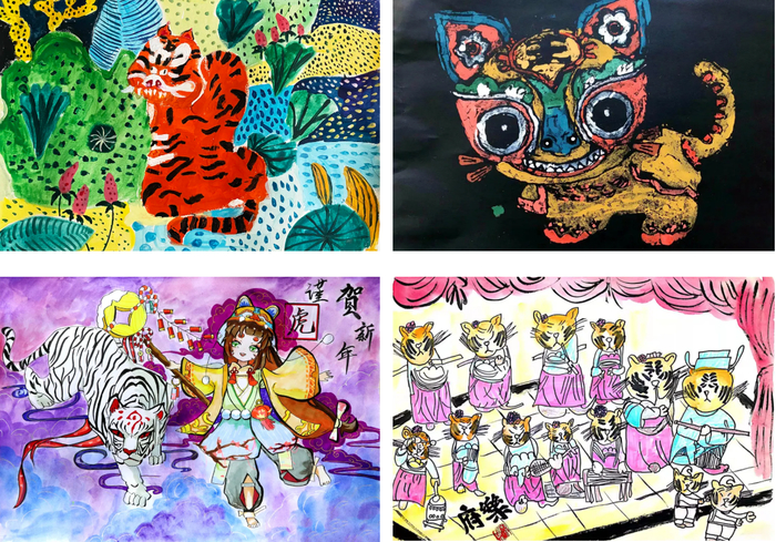 据悉,本届公益大赛于2021年8月8日启动,11月30日截稿,历时3个月,共收到来自全国各地的3986幅参赛作品。经过专家认真严谨的评审,本届大赛共评选出获奖作品3040件,其中:金奖680件,银奖980件,铜奖1380件。获奖作品以中国传统文化中的生肖虎文化为载体,以少儿的视角,通过年画、剪纸、泥塑、版画、国画、书法等不同的艺术表现形式,表达了小作者对新时代、新生活的美好祝福。