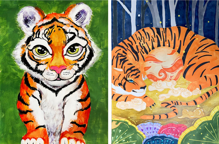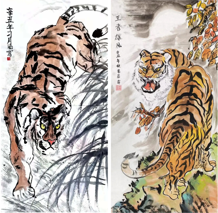 这些作品形态多样,造型生动,充满活力。以极其丰富的绘画语言展示出“虎”形象的千姿百态:它们或勾勒神韵,或刻画入微;或传递吉愿,或针砭时弊;或朴质淡雅,或浓墨重彩;或诙谐幽默,或发人深省......但无论哪种形式,都有传承、有创新、有发展,让生肖虎这一传统文化形象彰显出时代品格,为我们呈现出虎文化的视觉盛宴。
