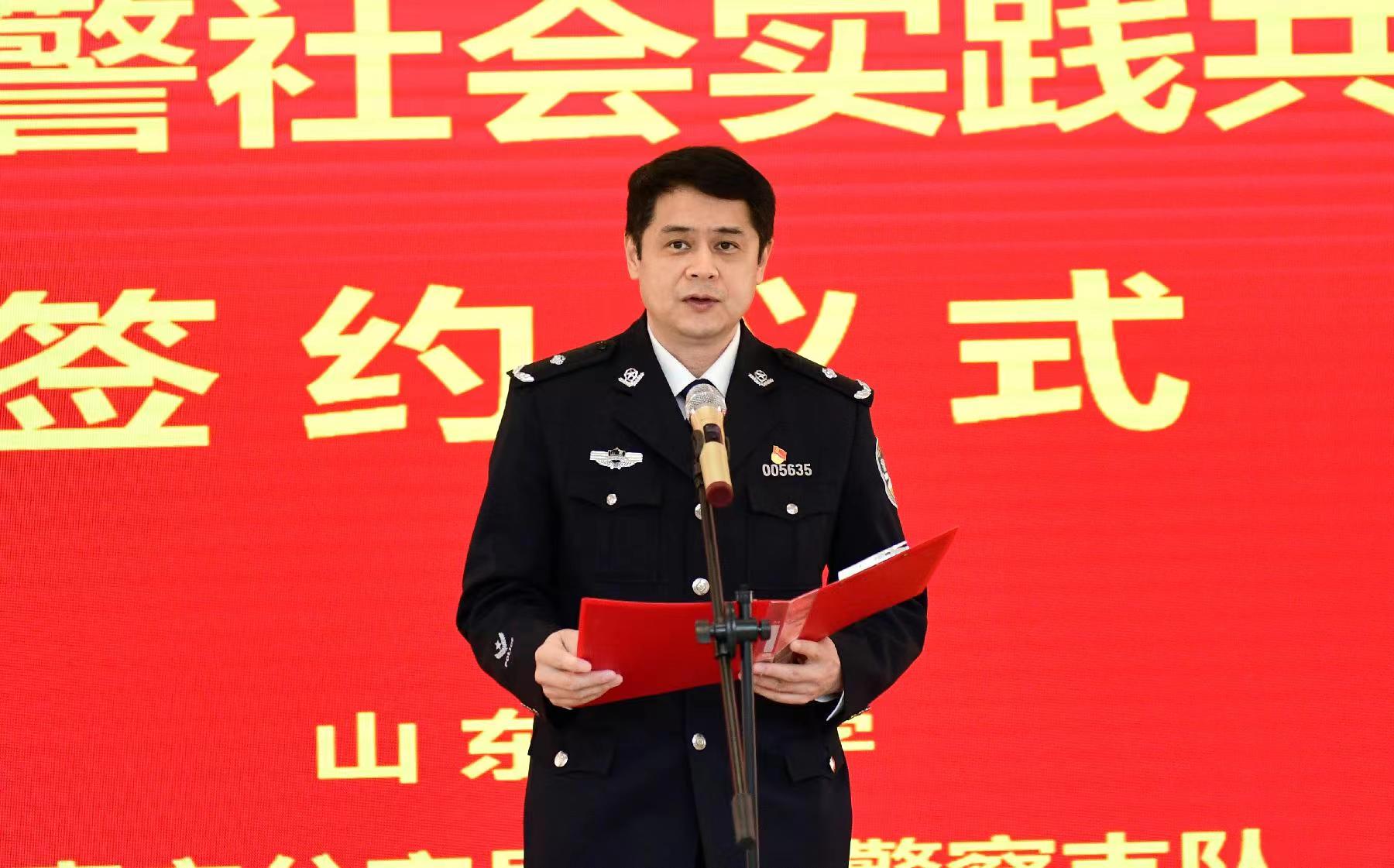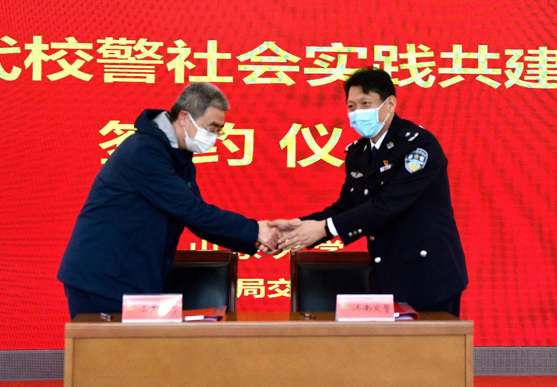 3月29日上午,济南交警与山东大学举行合作共建协议签约仪式。山东大学党委副书记王君松,济南市公安局党委委员、政治部主任李海峰,山东大学文化产业研究院院长王育济,济南交警支队政委段富勇,以及山东大学人文社科研究院、服务山东办公室、文化产业研究院相关负责同志,交警支队在家领导、各警务保障部门主要负责同志及民警代表参加活动。